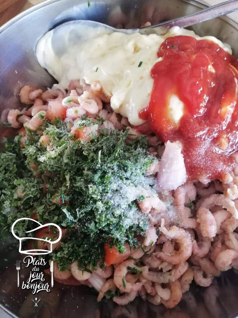 et ajoute et mélange avec la mayonnaise et le ketchup jusqu'à obtenir une consistance homogène.