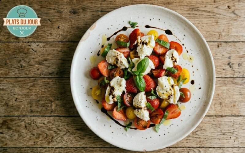 C'est le plat idéal pour surprendre tes convives lors d'un déjeuner ensoleillé. La douceur de la fraise vient sublimer le caractère de la tomate et le crémeux de la mozzarella pour une explosion de saveurs en bouche. Simple, rapide et d'une élégance rare, cette assiette va devenir ton incontournable de l'été !