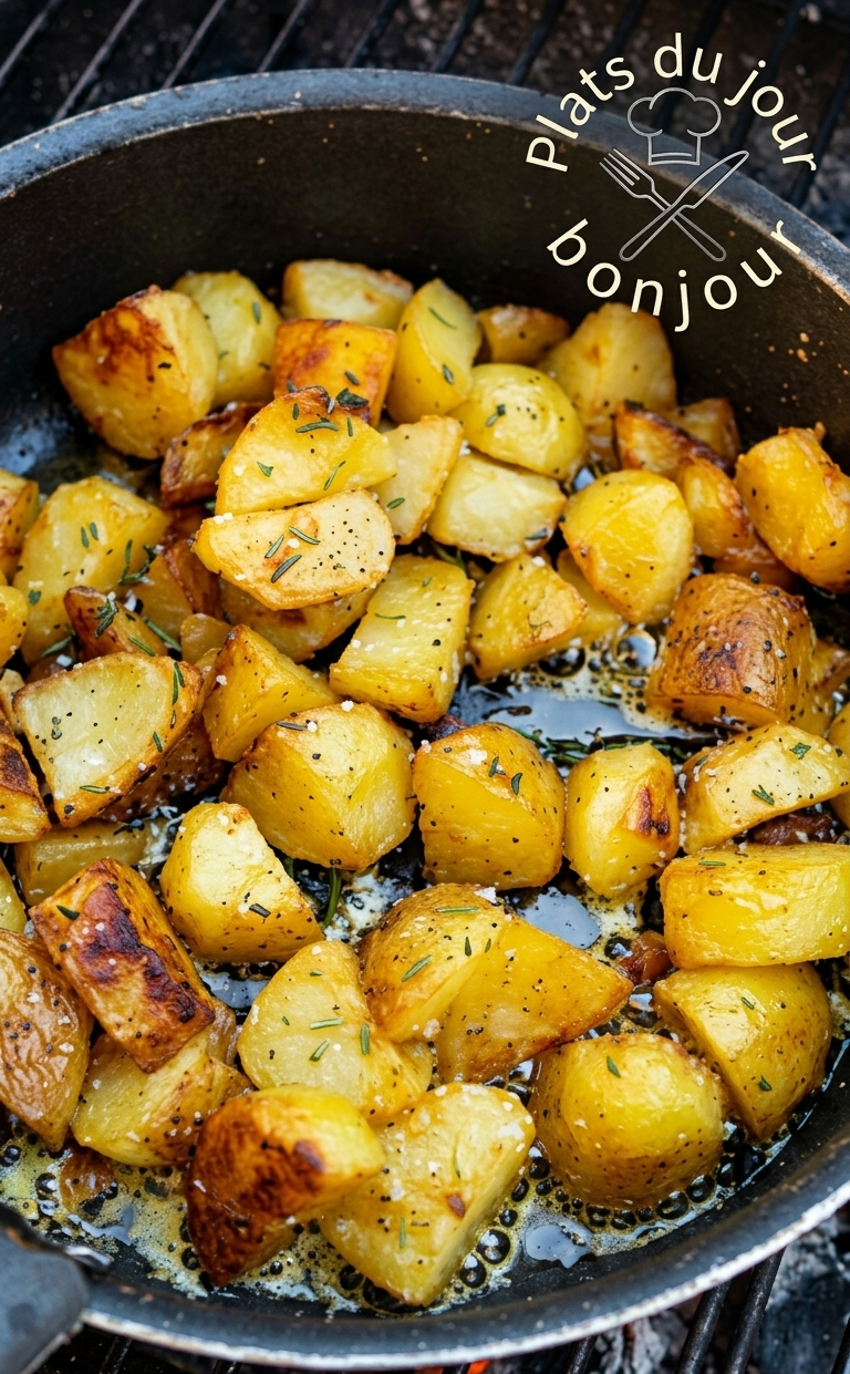 Découvre ces pommes de terre rissolées croustillantes et dorées 😋 — un accompagnement simple, savoureux et parfait pour accompagner toutes tes grillades au barbecue ou à la poêle !