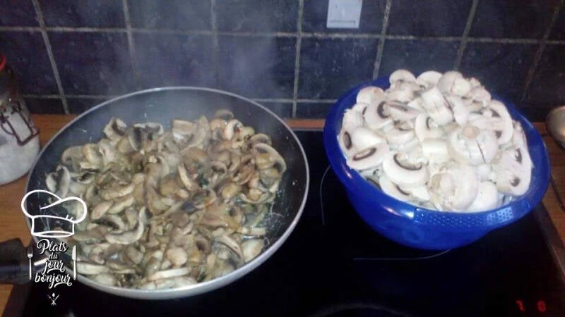 Ajoute le jus de viande aux champignons 🍄🟫 et fais cuire jusqu'à ce qu'ils soient croquant.