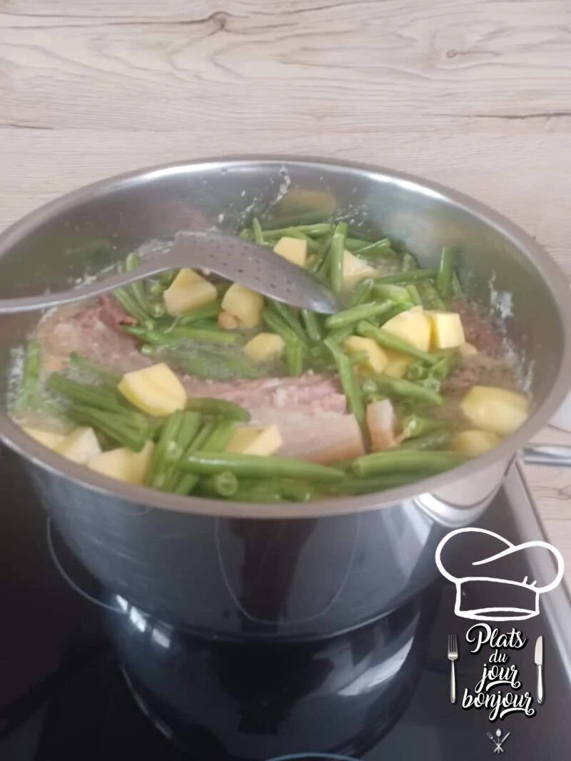 Le jour avant je met cuire la viande dans de l'eau. Car le lendemain quand il sera refroidi j'écume la surface pour retirer l'excès de graisse.