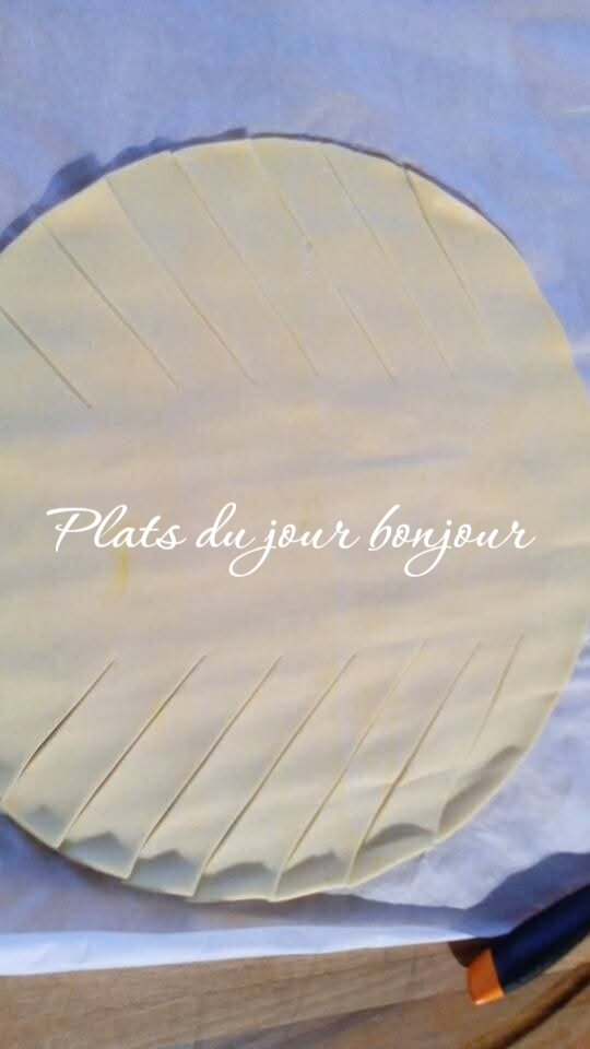 Ou plus simple tu mets la garniture au milieu de la pâte feuilletée et recouvre le dessus et fait des simples entailles .